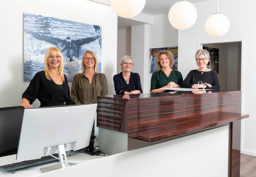 Am Empfang kümmert man sich um die Organisation der Praxis, Telefonate Termine, etc. damit die Therapeuten sich voll und ganz um die Patienten kümmern können.